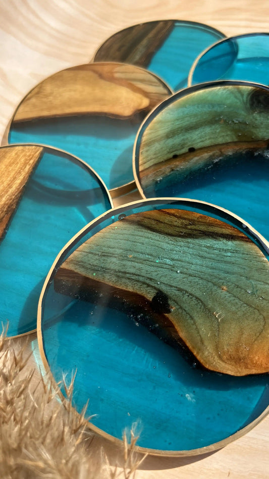 Blue Lagoon & Wood Coasters - Set of 6