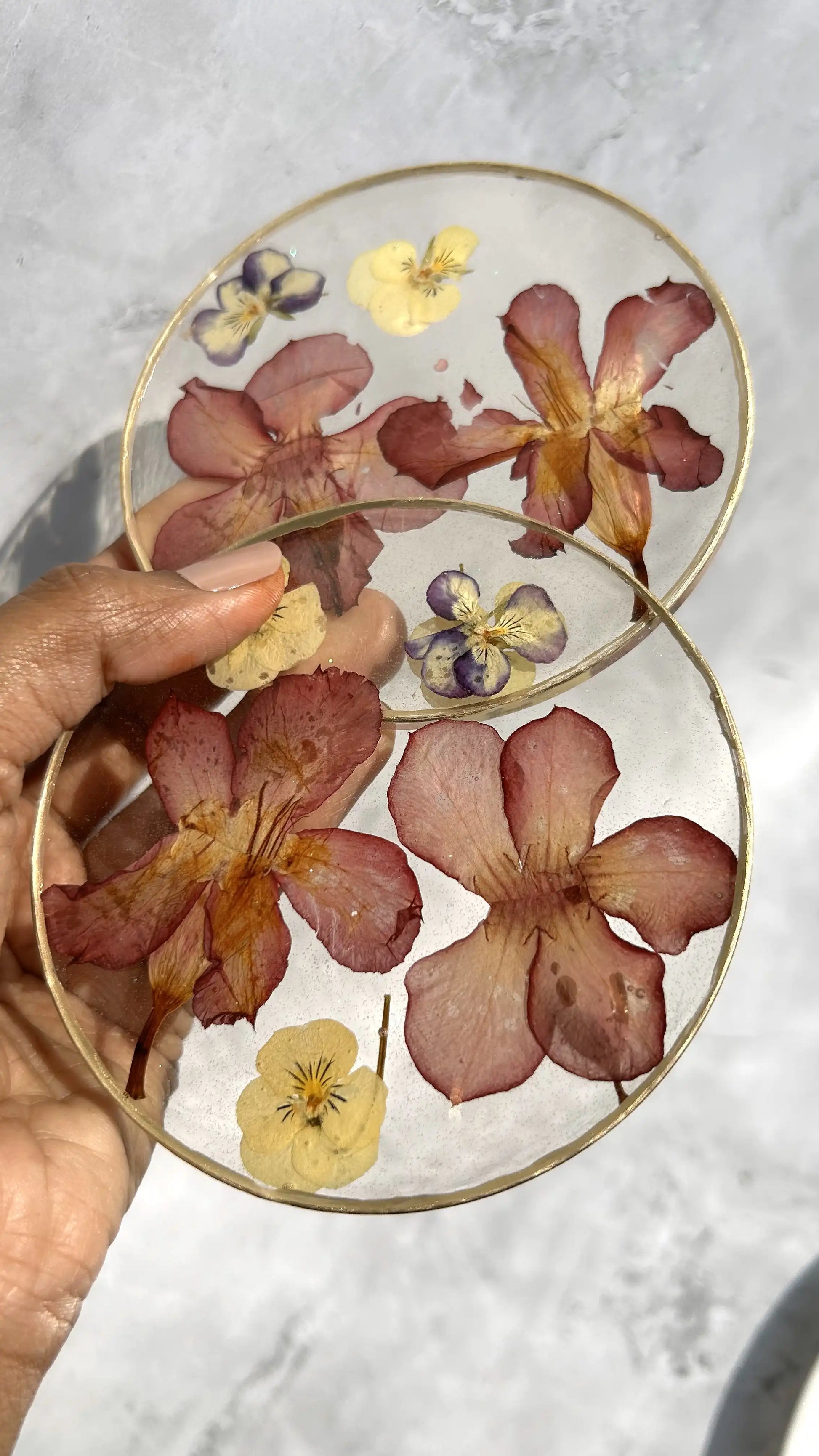 - Breathtaking Design: Each coaster features vibrant Adenium flowers, beautifully suspended in crystal-clear resin, allowing the natural colors and details to shine through.