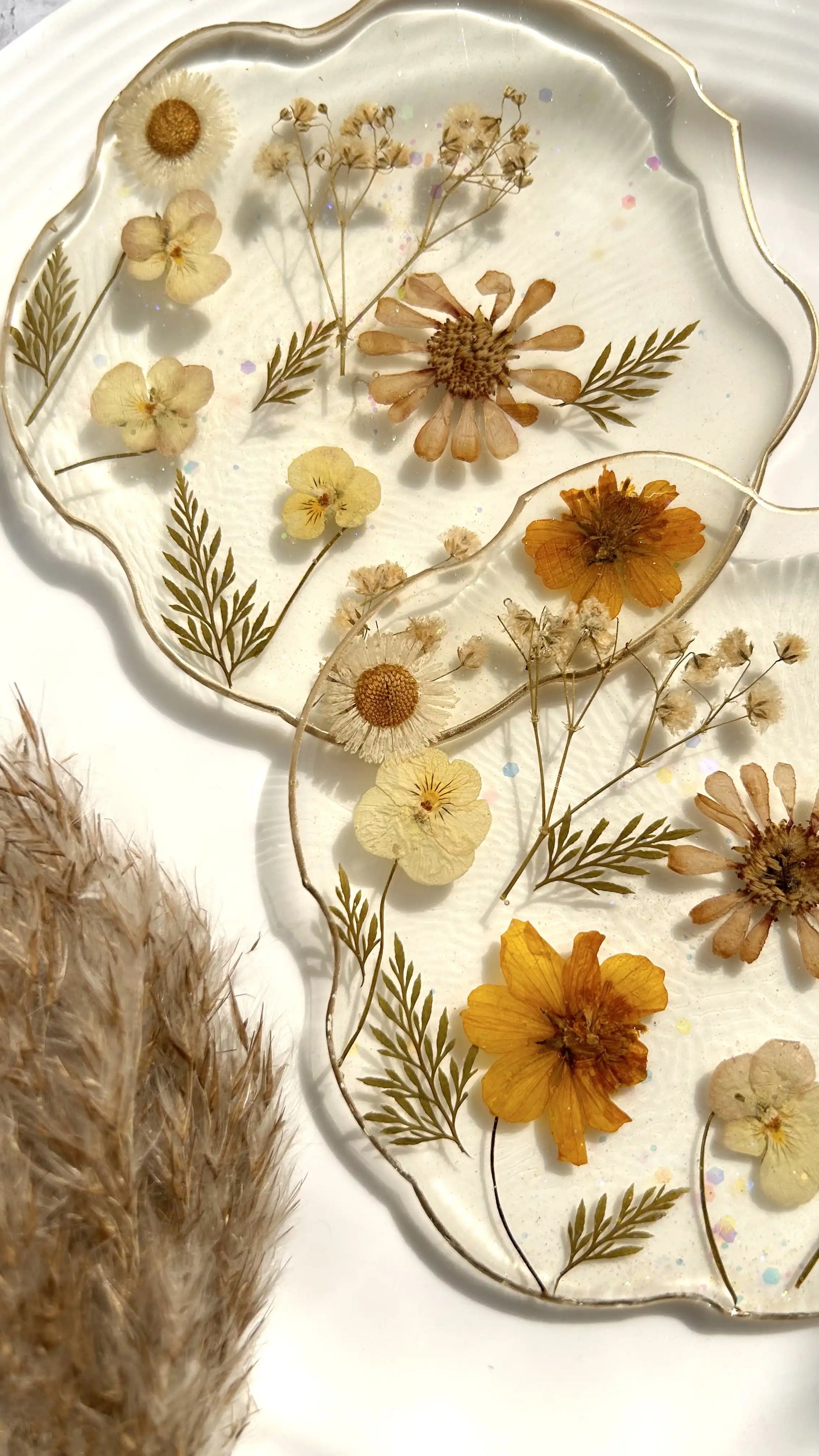Elevate your home decor with our stunning Uneven Mixed Flower Transparent Coaster Set, where artistic design meets the natural beauty of real blooms. Each coaster is uniquely shaped, featuring an assortment of dried flowers meticulously arranged and encased in transparent resin base. The organic forms of the coasters add an element of whimsy and charm, making them a perfect addition to any tabletop.