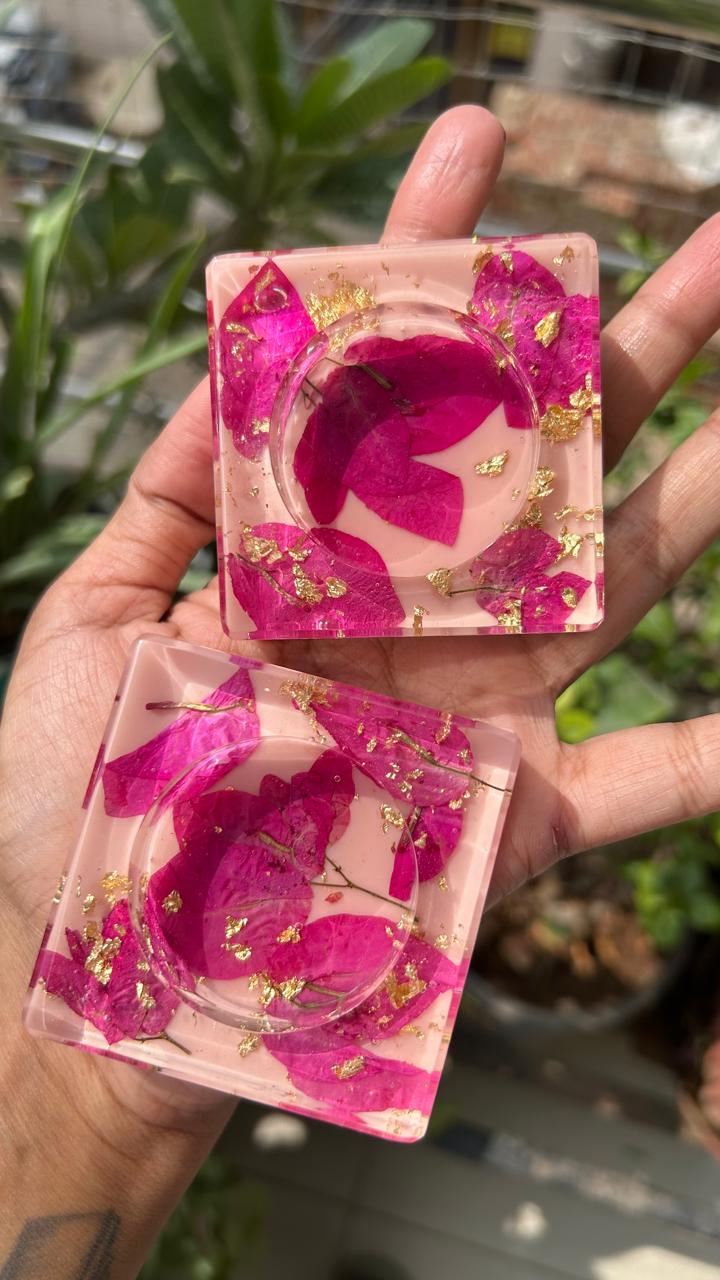 Illuminate your space with the delicate charm of nature. Our handcrafted T-light candle holders are adorned with real pink bougainvillea flowers, preserved to capture their soft, everlasting beauty. When lit, the warm glow of the candle dances through the petals, casting a gentle, romantic radiance that transforms any corner into a serene escape.