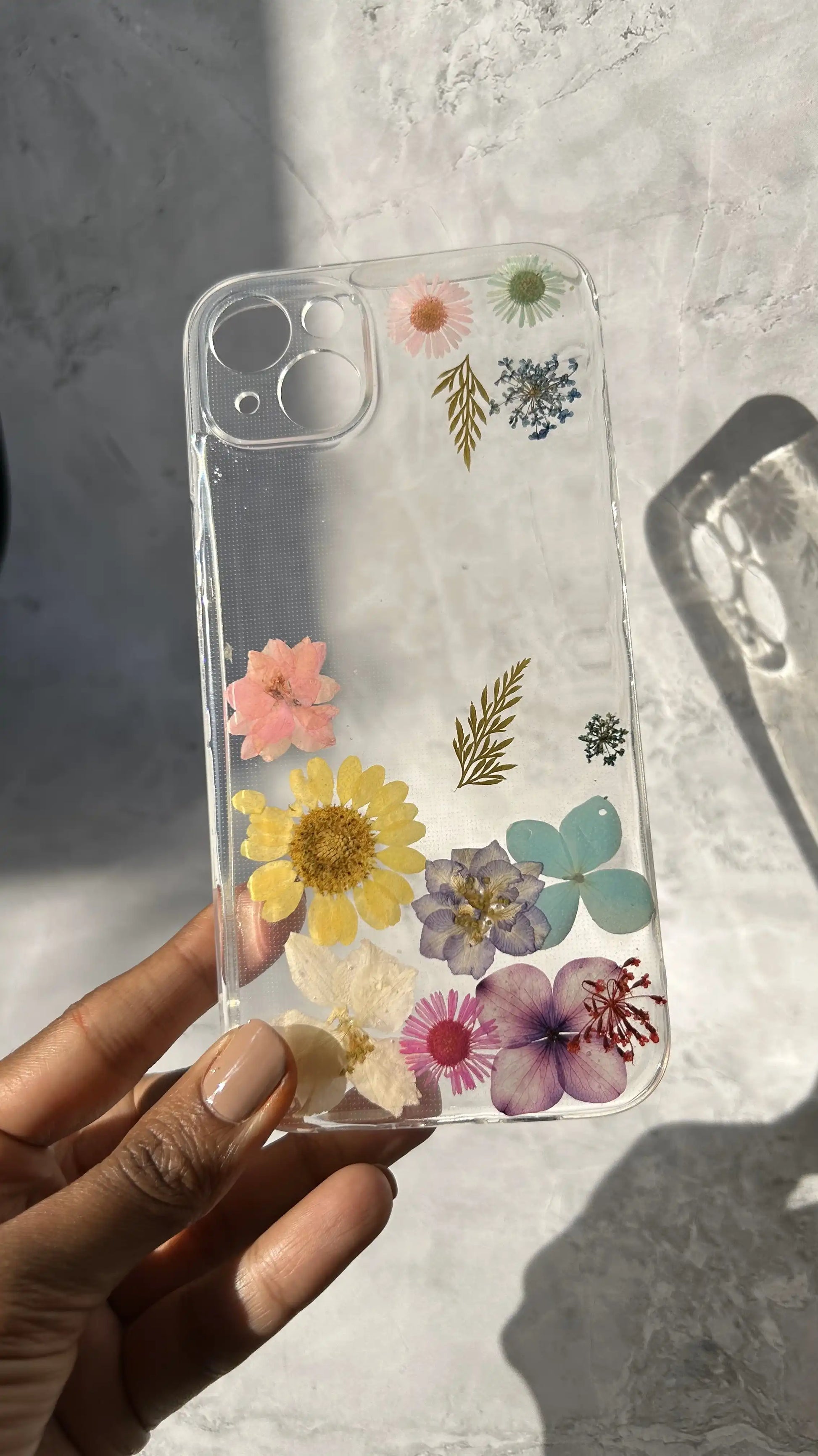 Embrace the beauty of nature with our exquisite mobile cover, handcrafted with real pressed flowers. Designed to bring a touch of the outdoors into your everyday life, this case combines natural floral elements with durable protection. Each cover is unique, showcasing delicate, handpicked flowers that are carefully preserved to maintain their vibrant colors and intricate details.