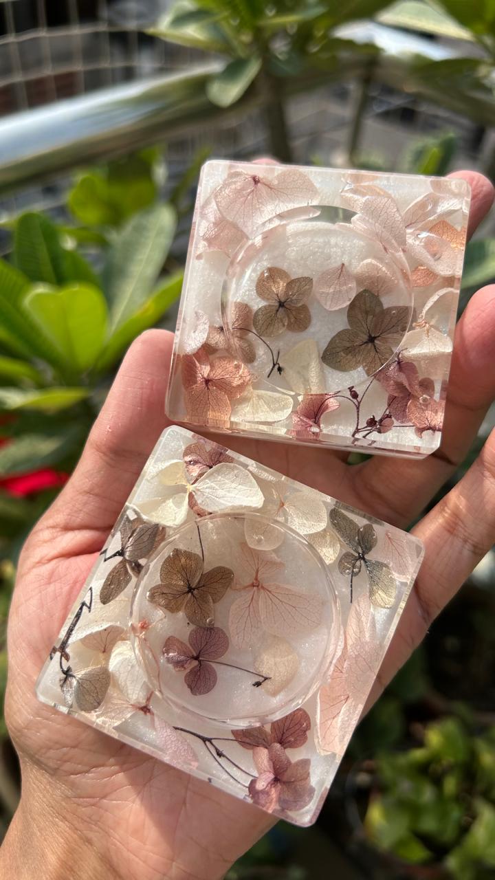 Bring home the soft elegance of nature with our handcrafted Hydrangea T-light candle holders. Each piece is delicately adorned with real hydrangea petals, preserved to capture their timeless charm. When a candle flickers inside, the blooms glow gently, casting a serene, dreamy aura that transforms any space into a sanctuary of warmth and beauty.