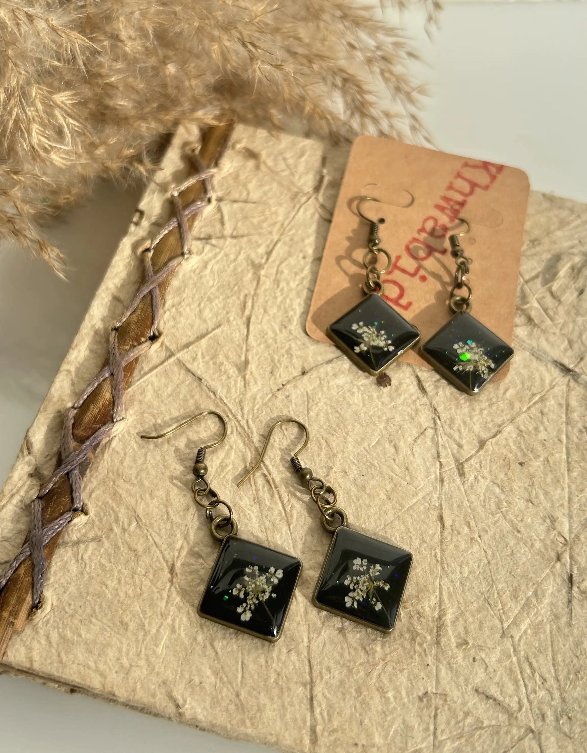 Introducing our exquisite Hedgeparsley Square Dangles, where the beauty of nature meets contemporary design. Handcrafted with real small hedge parsley flowers, these tilted square earrings showcase the delicate charm of these unique blooms, making each pair a captivating addition to your jewelry collection. Elevate your style with our Hedge parsley Square Dangles and let the elegance of nature shine through!